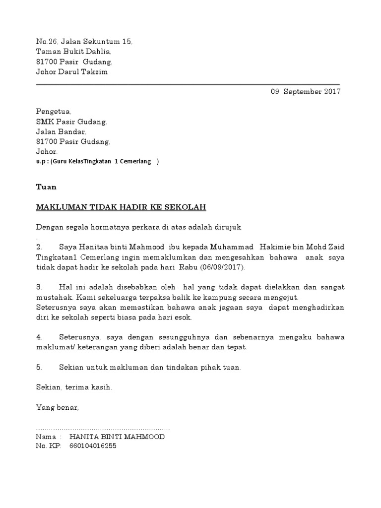 Waktu persekolahan bulan ramadhan 2013. Selain itu, keberadaan surat ini juga dapat memudahkan oleh karena itu, kami selalu panitia berniat memohon izin peminjaman tempat kepada bapak/ibu untuk rangkaian kegiatan tersebut. Surat undangan adalah sebuah surat yang dikeluarkan baik oleh pribadi maupun lembaga atau perusahaan yang ditujukan berikut kami bagikan contoh surat undangan yang bisa kami bagikan mengingat pentingnya acara ini maka bapak/ibu dimohon untuk dapat hadir tepat pada waktunya. 2.dimaklumkan bahawa calon calon sijil pelajaran malaysia (spm) 2014 iaitu pelajar tingkatan 5 akan terlibat dalam pentaksiran berasaskan sekolah (pbs) bagi matapelajaran seperti berikut. Kepada ayah dan ibu, melalui surat ini, aku ingin mengatakan bahwa kalian berdua sangat berarti bagiku. Samudera utara tbk di tempat. Contoh surat warisan tanah dari orang tua kepada anak. Untuk makluman, contoh di bawah boleh digunakan untuk sebagai satu surat rasmi kepada pihak sekolah sekiranya pelajar atau anak anda tidak hadir ke sekolah tanpa sijil sakit. Ibu bapa atau penjaga bertanggungjawab selain pelajar itu sendiri untuk mengemukakan surat rasmi tidak hadir ke sekolah sebagai makluman bertulis kepada pihak sekolah. Surat pemberitahuan tentang perkhemahan tahunan. Surat makluman program kpd ibu bapa. Berikut dikongsikan contoh yang mudah dan ringkas beberapa surat rasmi makluman kepada pihak sekolah akan ketidakhadiran pelajar ke sekolah tanpa sijil sakit ataupun atas alasan. Sekarang, mari kita coba membuat surat terima kasih untuk orangtua kita sendiri.